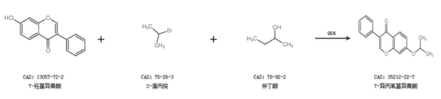 2.通过7-羟基异黄酮、2-溴丙烷和仲丁醇合成7-异丙氧基异黄酮,收率约96%;