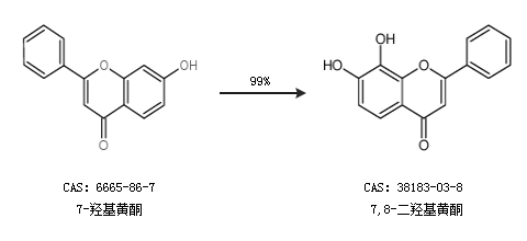 1.通过7-羟基黄酮合成7,8-二羟基黄酮,收率约99%;
