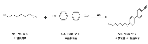 1.通过1-溴代庚烷和氰基联苯酚合成4-庚氧基-4''-氰基联苯,收率约61%;