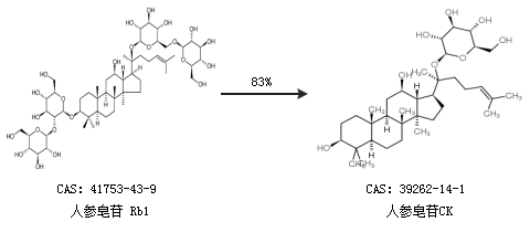 1.通过人参皂苷 Rb1合成人参皂苷CK,收率约83%;