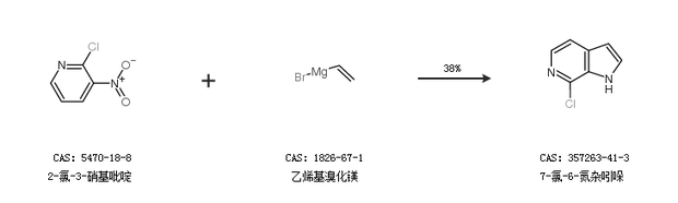 1.通过2-氯-3-硝基吡啶和乙烯基溴化镁合成7-氯-6-氮杂吲哚,收率约38%;