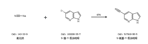 2.通过氰化钠和5-溴-7-氮杂吲哚合成5-氰基-7-氮杂吲哚,收率约67%;