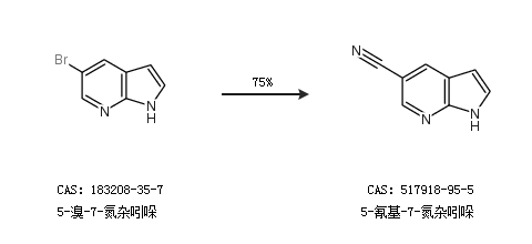 1.通过5-溴-7-氮杂吲哚合成5-氰基-7-氮杂吲哚,收率约75%;