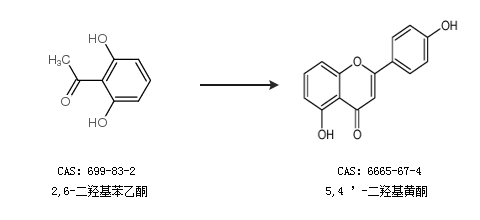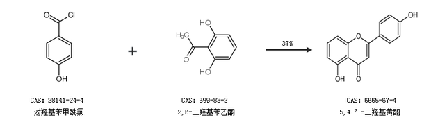2.通过对羟基苯甲酰氯和2,6-二羟基苯乙酮合成5,4 ’-二羟基黄酮,收率约37%;
