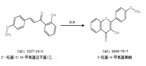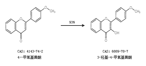 2.通过4--甲氧基黄酮合成3-羟基-4-甲氧基黄酮,收率约93%;
